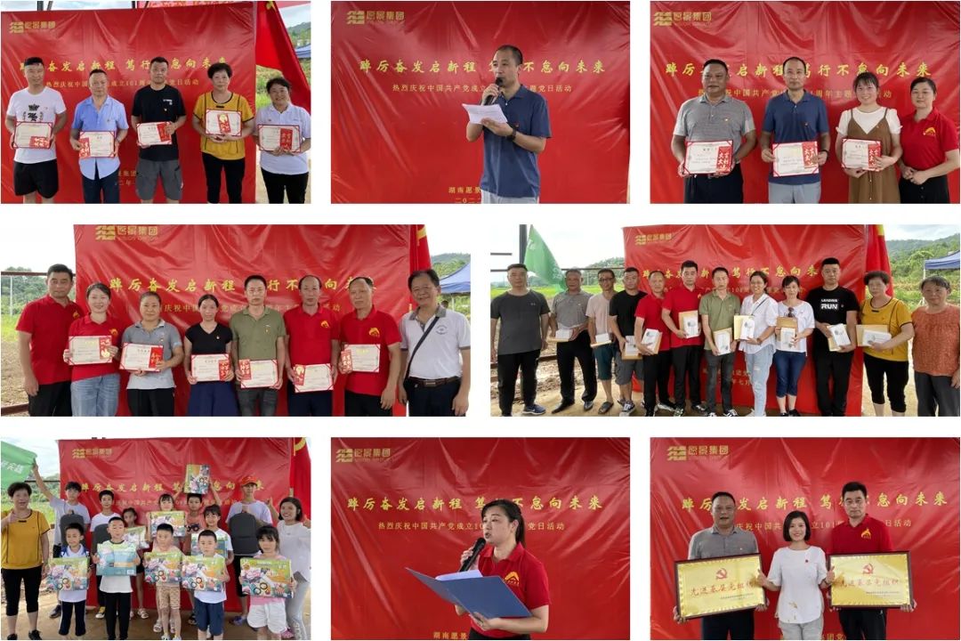 勞動(dòng)結(jié)束后,在農(nóng)業(yè)基地全體黨員舉行了一場(chǎng)簡(jiǎn)樸而熱烈的慶祝中國(guó)共產(chǎn)黨成立101周年的七一慶祝大會(huì)。會(huì)上集團(tuán)黨委向今年的優(yōu)秀共產(chǎn)黨員、優(yōu)秀黨務(wù)工作者、先進(jìn)支部予以表彰頒獎(jiǎng),對(duì)學(xué)習(xí)強(qiáng)國(guó)學(xué)習(xí)積分排名前十的學(xué)習(xí)標(biāo)兵進(jìn)行表?yè)P(yáng),也為積極參加勞動(dòng)實(shí)踐表現(xiàn)優(yōu)秀的愿景少年們頒發(fā)了小獎(jiǎng)品,送上爸媽工作單位對(duì)他們的一片關(guān)心和關(guān)愛(ài)之情。黨委書(shū)記張嬌同志以講黨課形式,向全體黨員分享了對(duì)黨的認(rèn)識(shí)、對(duì)公司的認(rèn)識(shí)、以及作為新時(shí)代企業(yè)黨員怎么擔(dān)當(dāng)作為。希望全體黨員、積極分子珍惜當(dāng)下,銘記黨恩、感恩公司,從提高黨員意識(shí)作表率、加強(qiáng)學(xué)習(xí)提升工作能力、立足崗位實(shí)干貢獻(xiàn)三個(gè)方面增強(qiáng)擔(dān)當(dāng)作為,勉勵(lì)大家同心同德,一起加油努力,把愿景建設(shè)更美好。