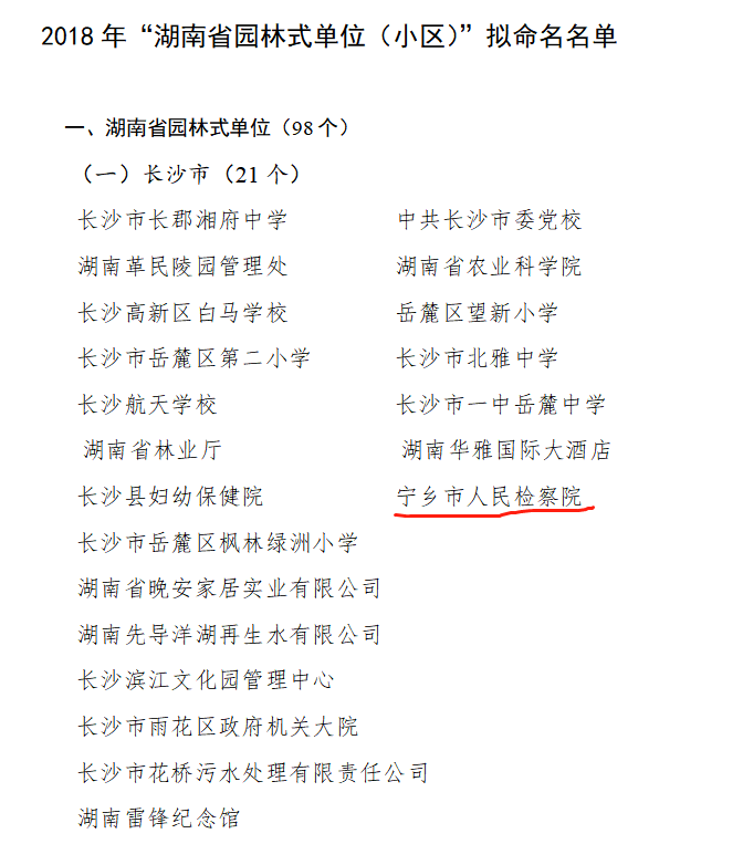 寧鄉(xiāng)獲評(píng)的單位和小區(qū)