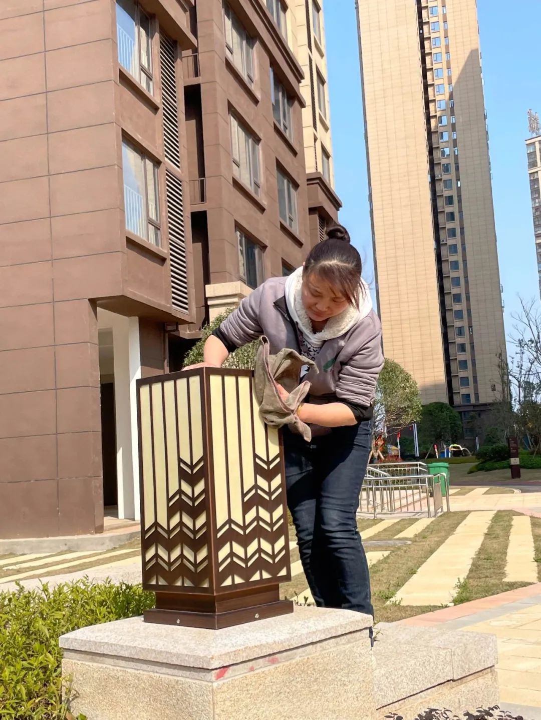小區(qū)綠化維護員定期對小區(qū)綠化進行及時修剪、鋤草、澆水、施肥、松土、滅蟲保養(yǎng)維護;保潔員堅持每天對各層樓電梯前室2次日常保潔,定期大掃除、保養(yǎng),車庫實行機械化清潔,全方位確保小區(qū)環(huán)境衛(wèi)生舒適、干凈、整潔。